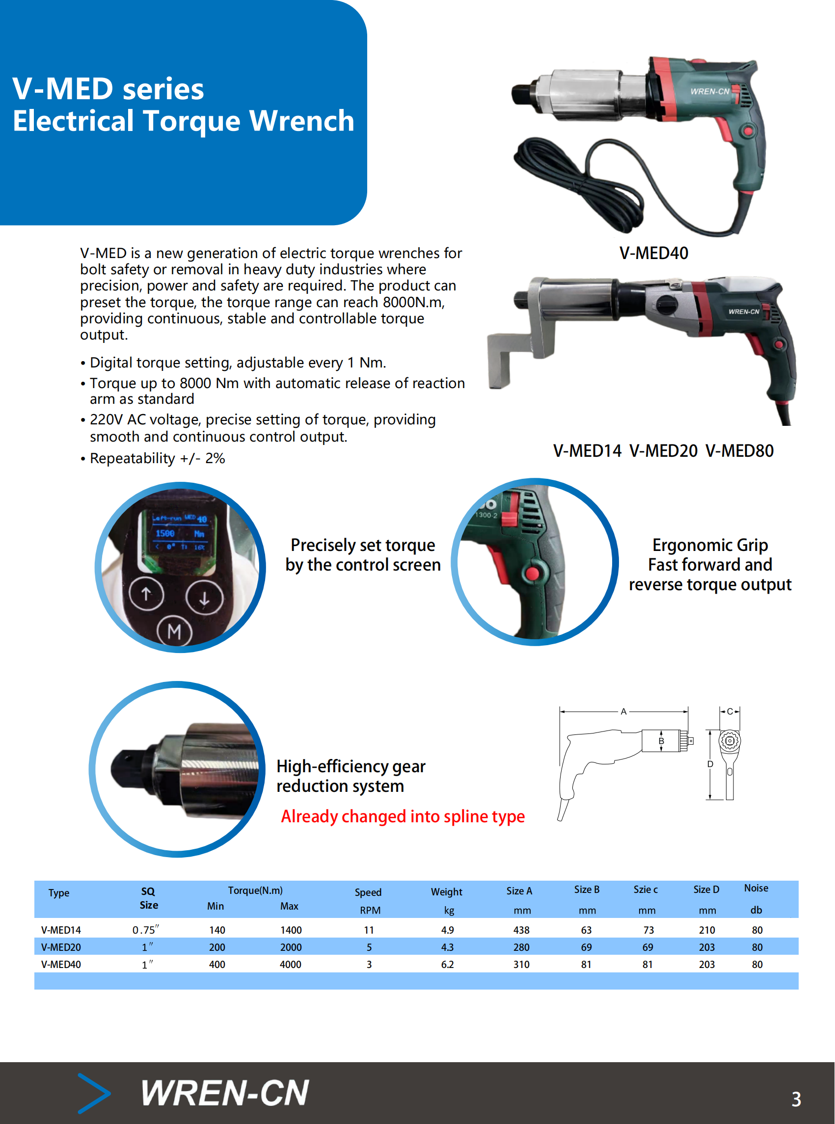 · Digital torque setting, adjustable every 1 Nm. · Torque up to 8000 Nm with automatic release of reaction arm as standard · 220V AC voltage, precise setting of torque, providing smooth and continuous control output. · Repeatability +/- 2%