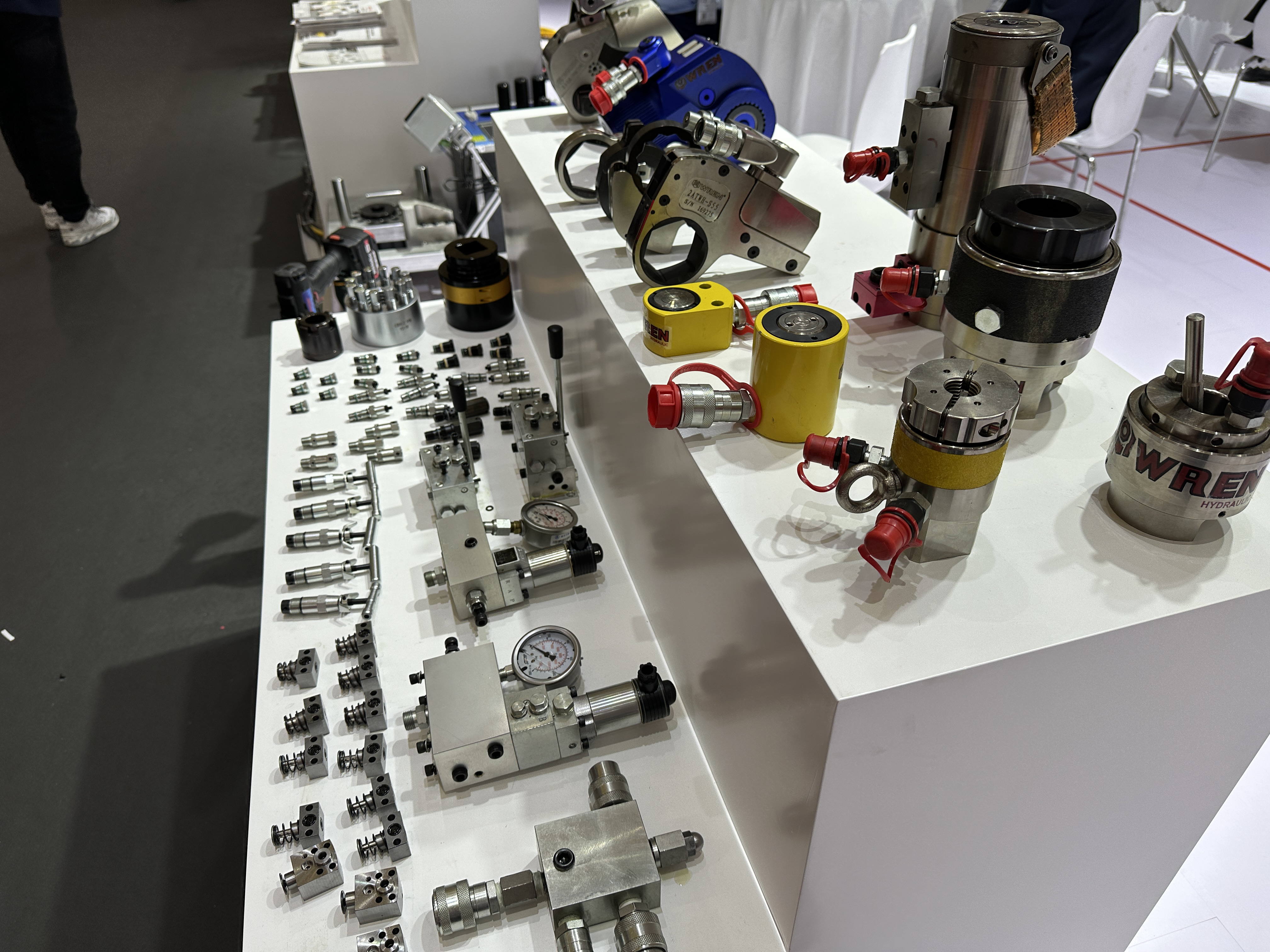 雷恩液壓作為一家大型的定扭矩扳手制造商,攜帶了智能液壓扳手泵、超高壓拉伸泵、液壓扳手扭矩校驗儀、閥塊等產品參加展覽會。